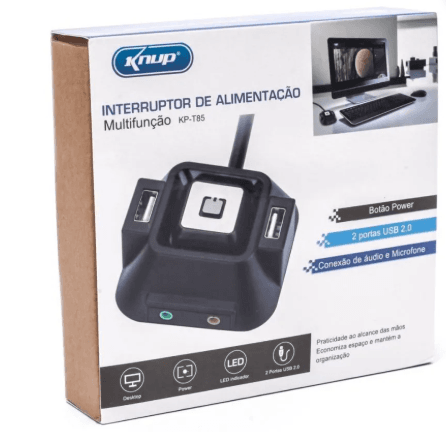 O Knup KP-T85 é a solução ideal para quem busca mais praticidade, organização e conforto no uso do computador. Com botão Power externo, portas USB e conexões de áudio integradas, ele centraliza funções essenciais e deixa seu setup mais eficiente e profissional.